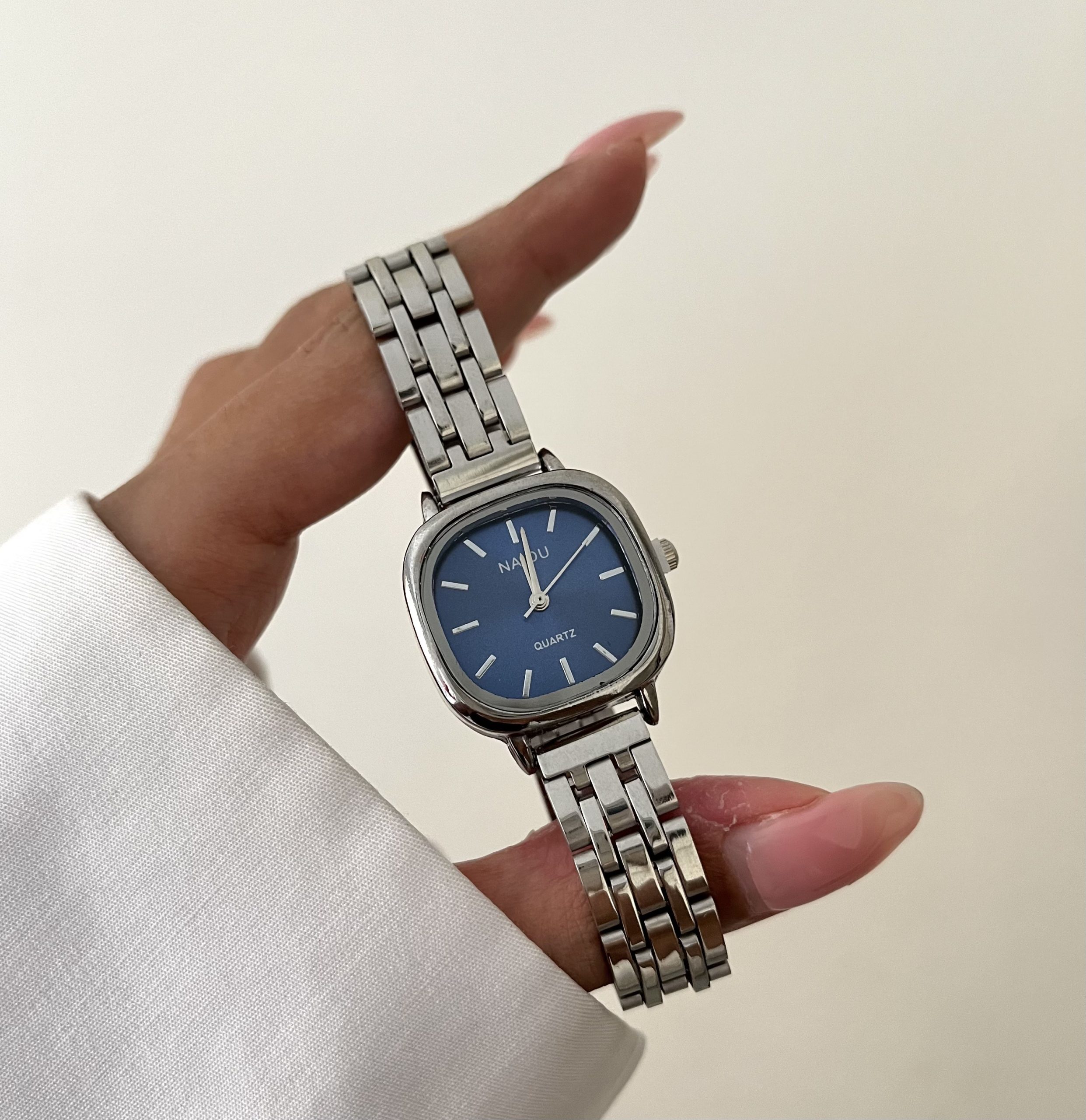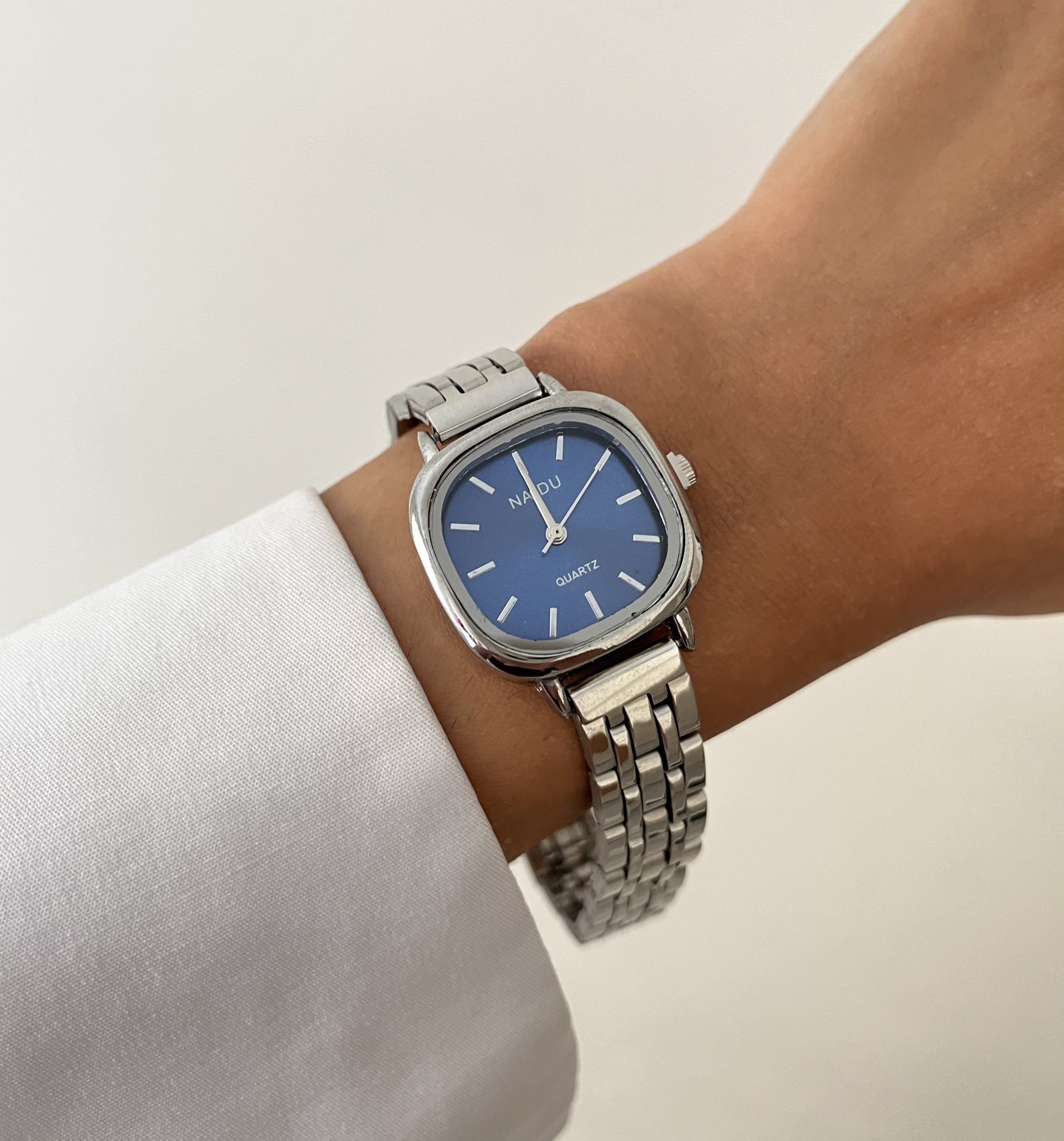 ساعت نایدو صفحه مربع سورمه ای بند حصیری
