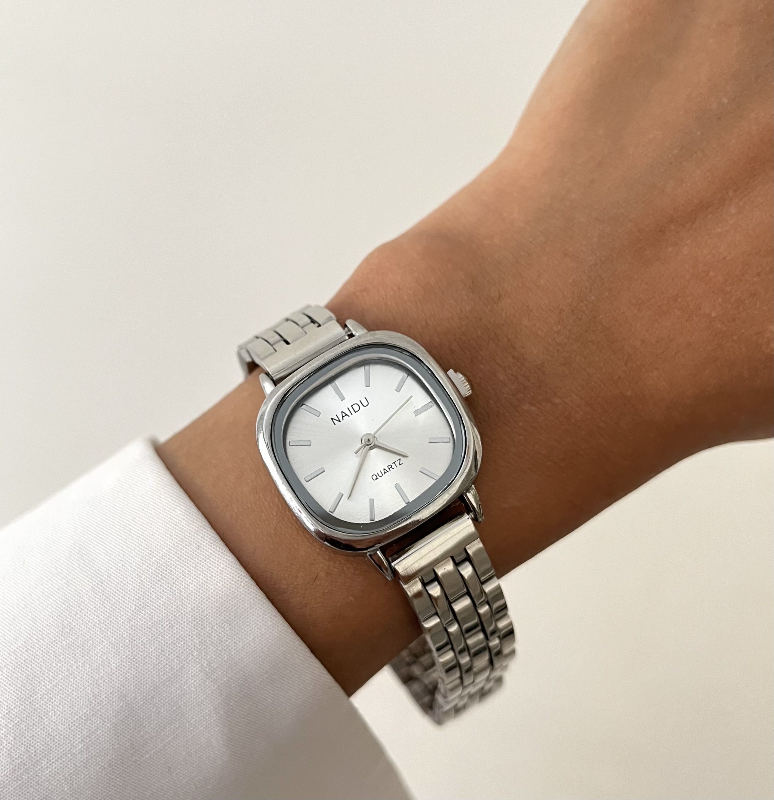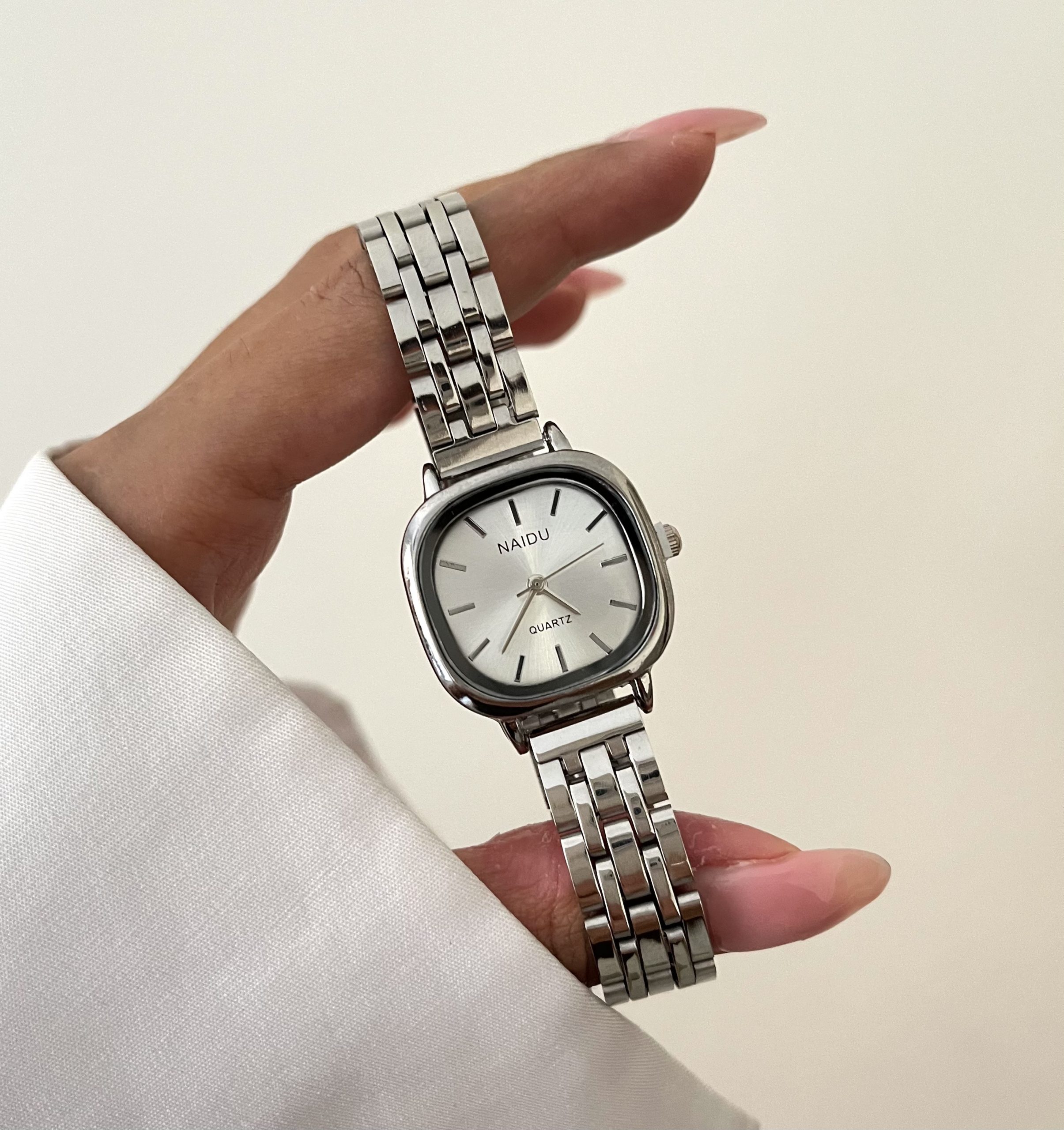 ساعت نایدو صفحه مربع سیلور بند حصیری