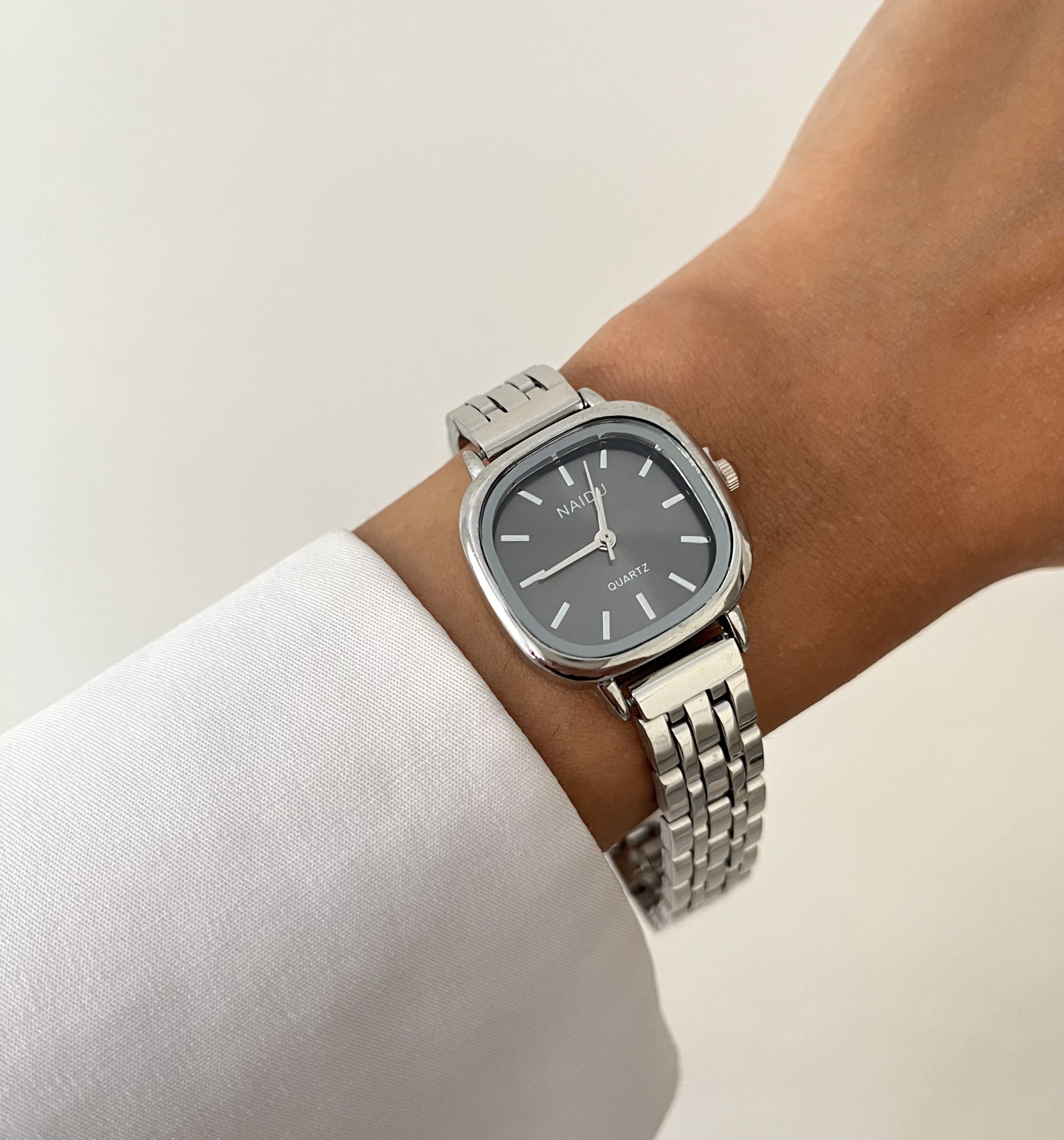 ساعت نایدو صفحه مربع سورمه ای بند حصیری