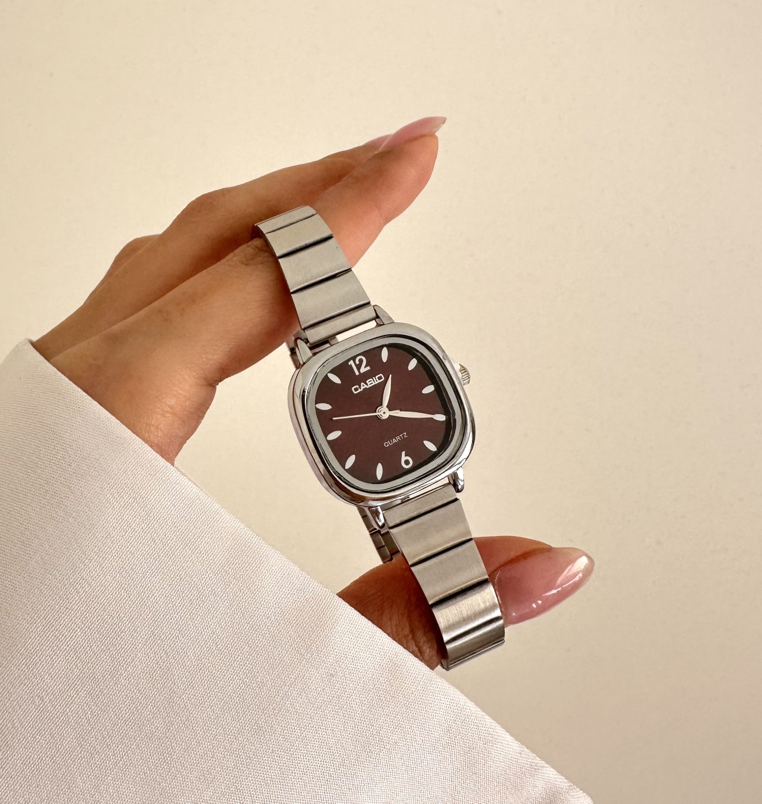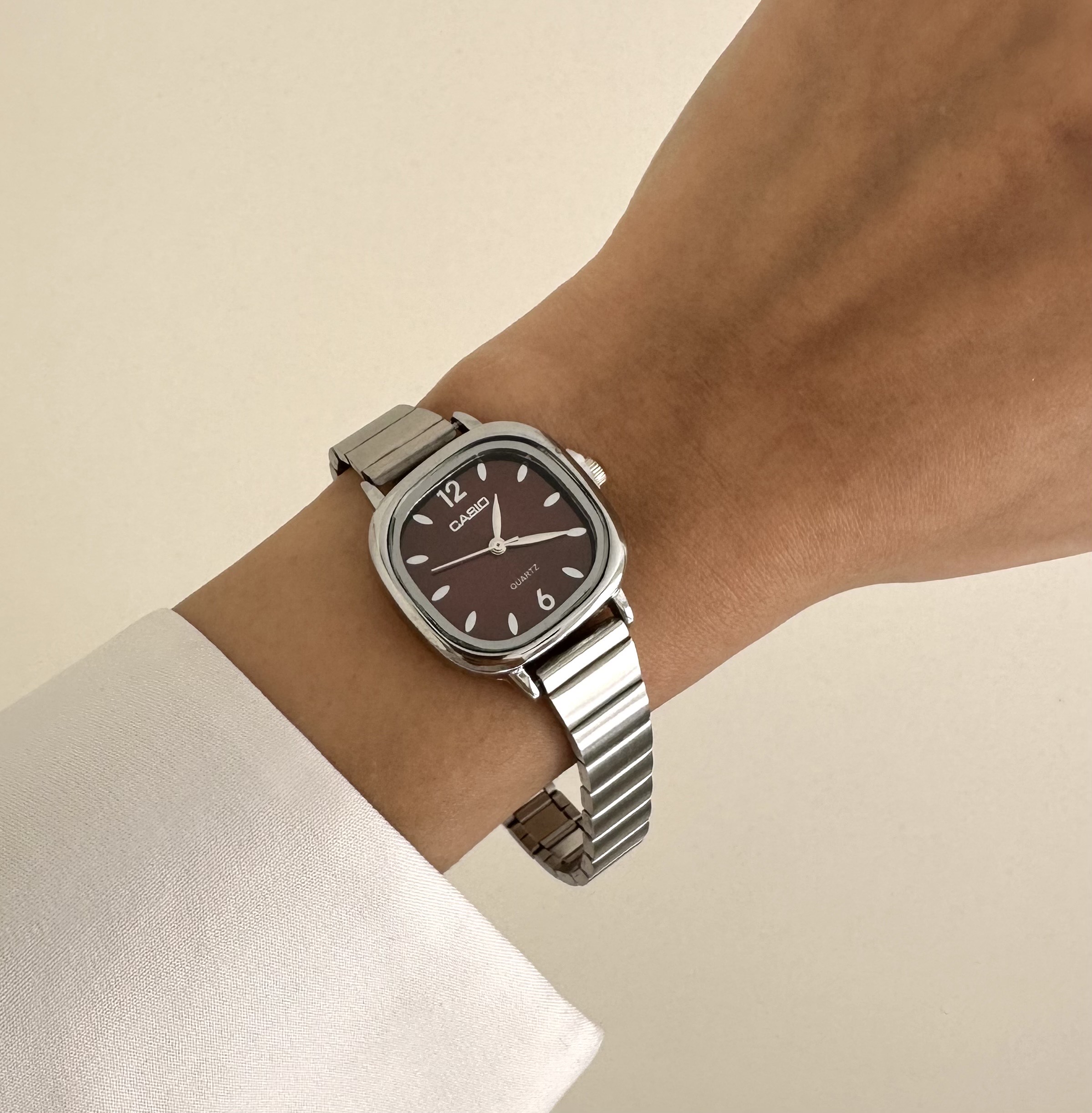 ساعت کاسیو بند کرکره ای صفحه زرشکی تیره