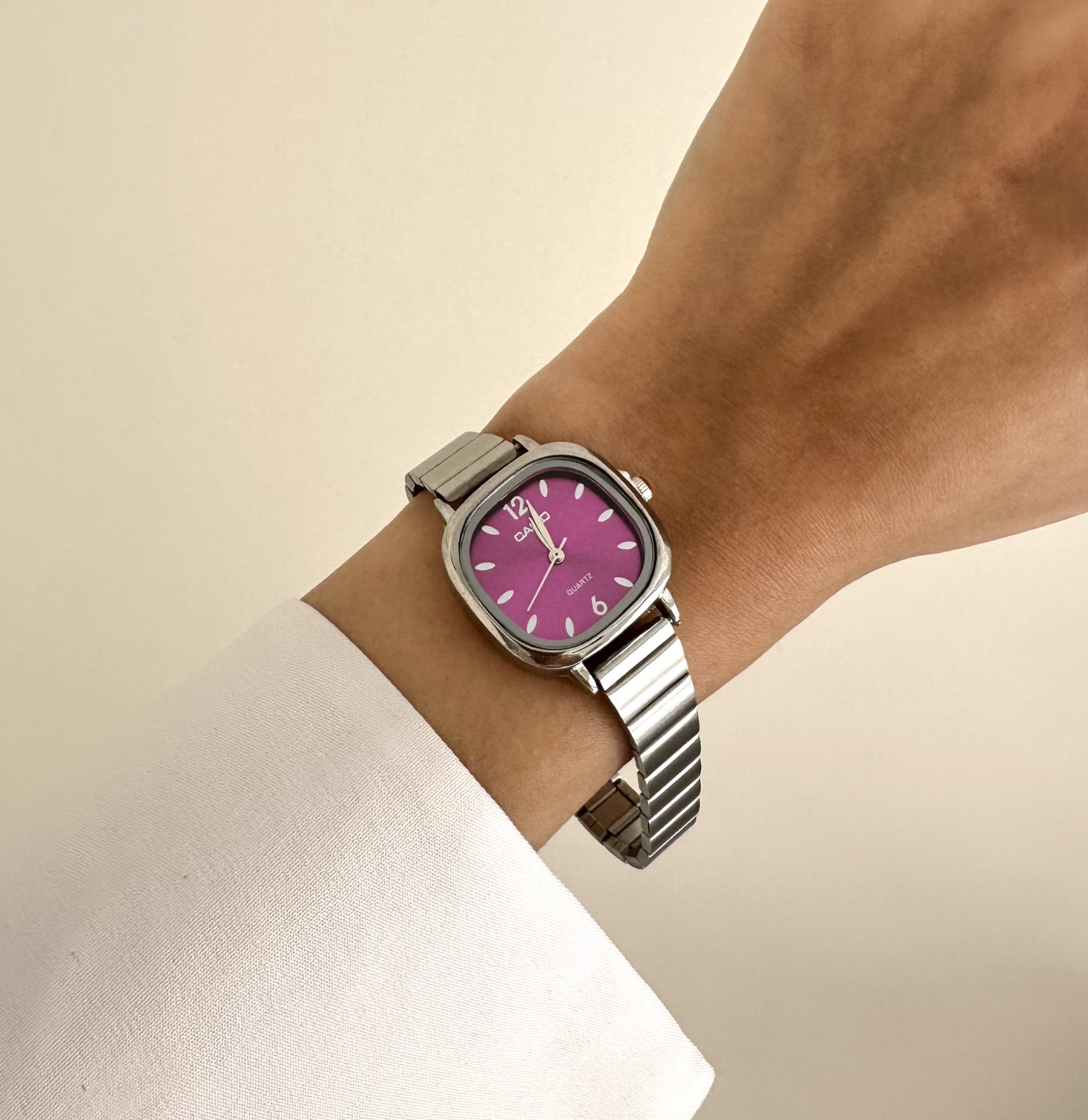 ساعت کاسیو بند کرکره ای صفحه بنفش