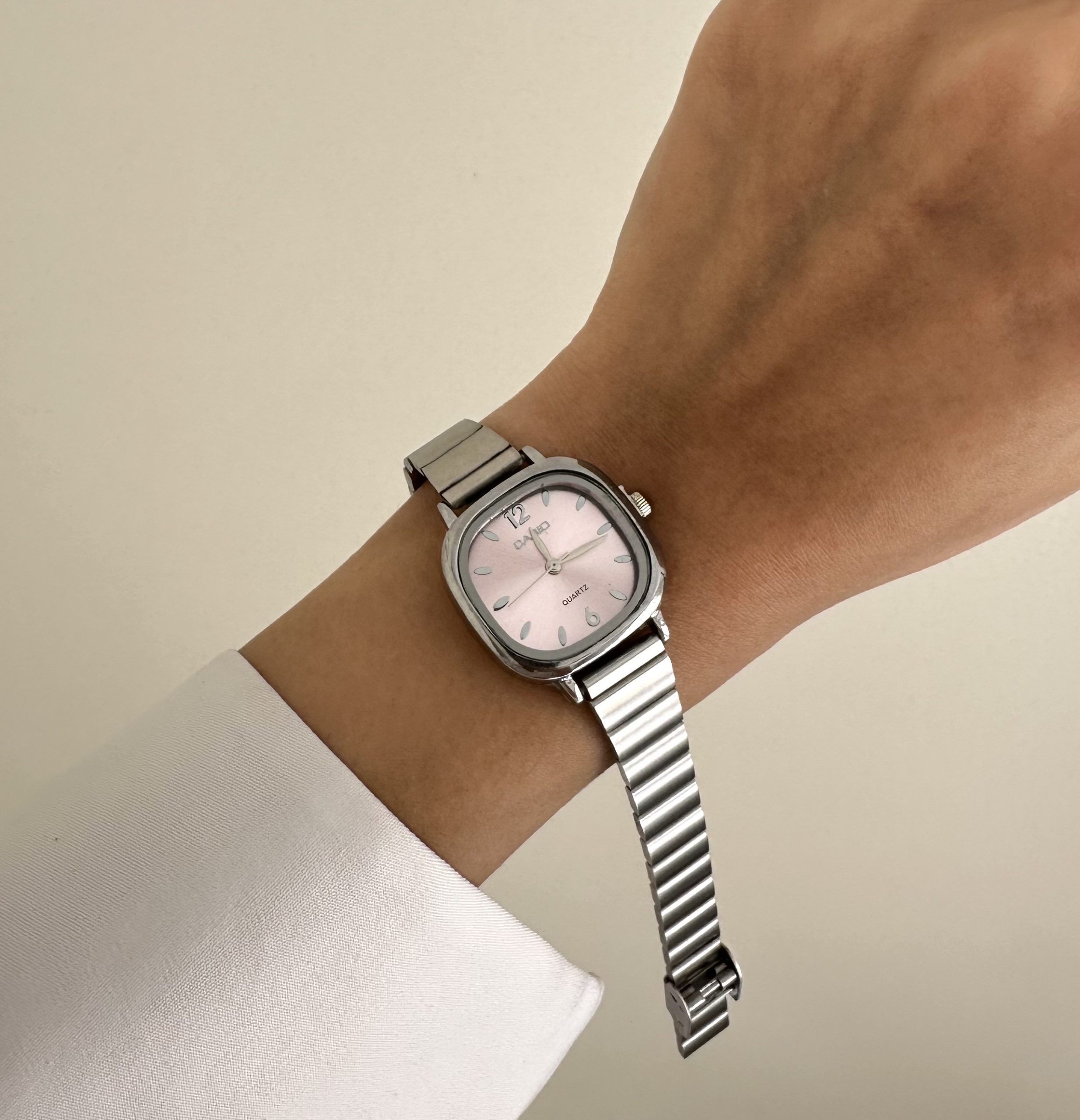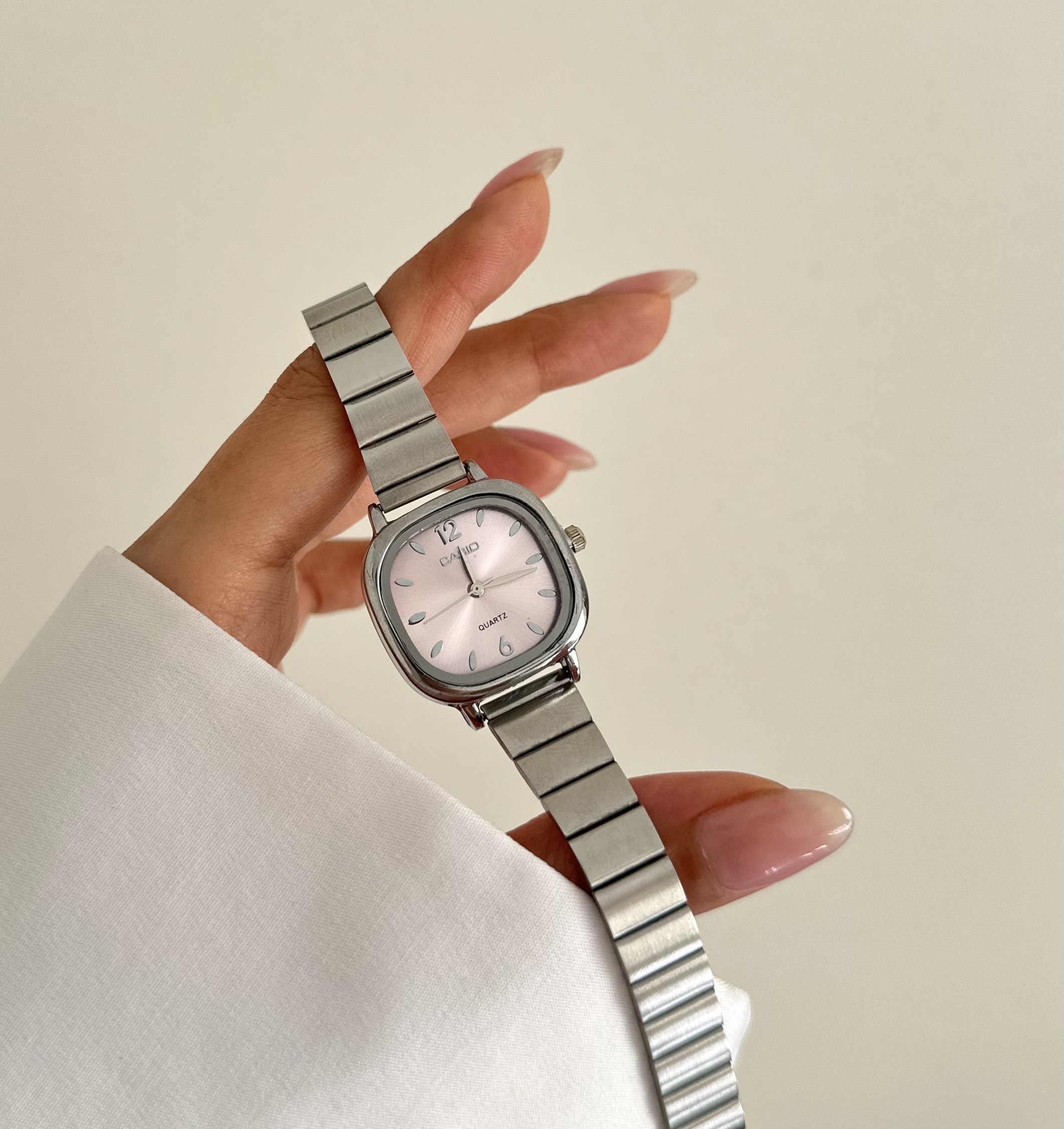 ساعت کاسیو بند کرکره ای صفحه صورتی