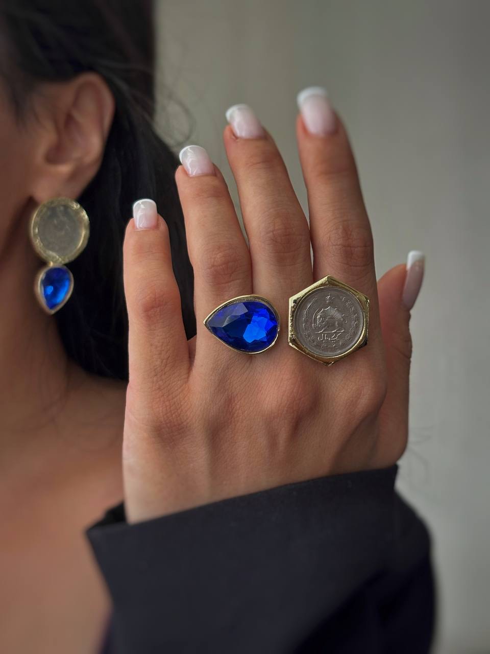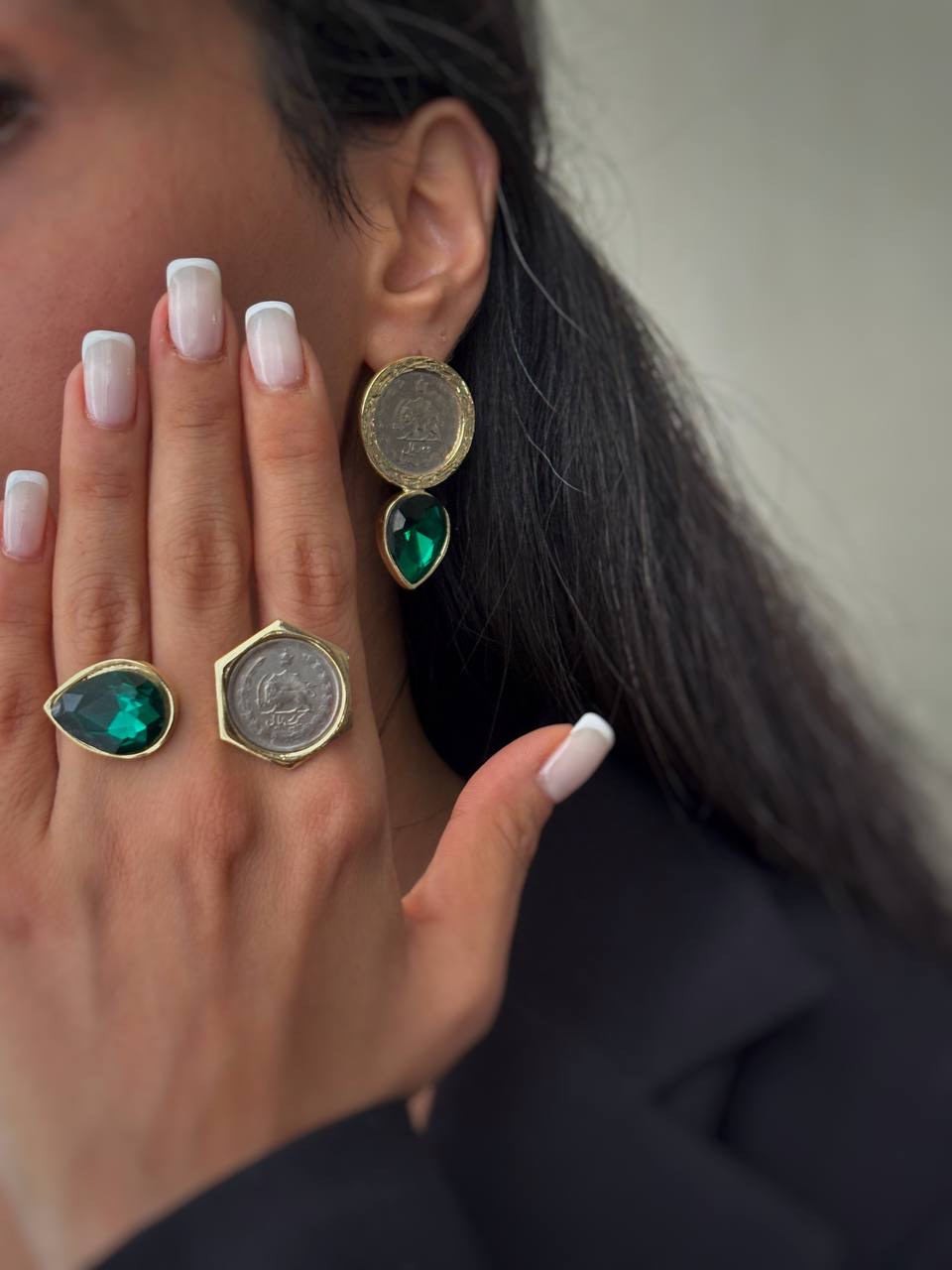 گوشواره سکه ای با نگین رنگی